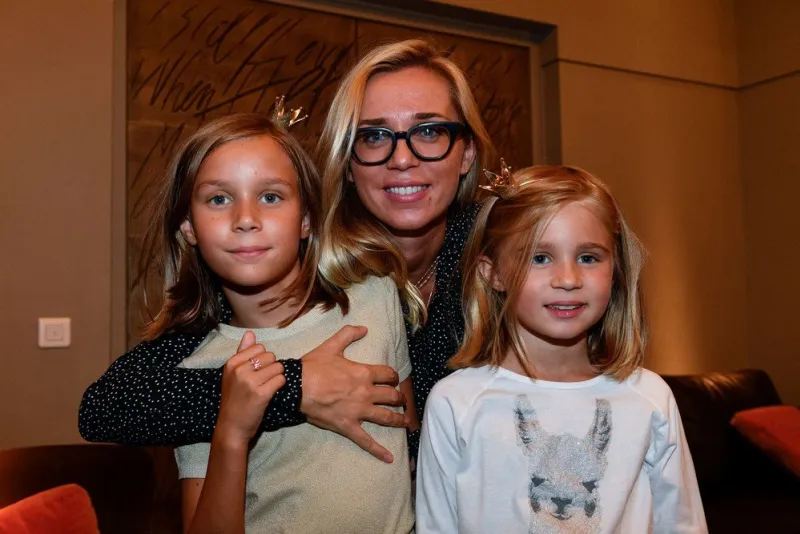 Laure, la femme du chanteur, ainsi que leurs jumelles Louise et Lola.
