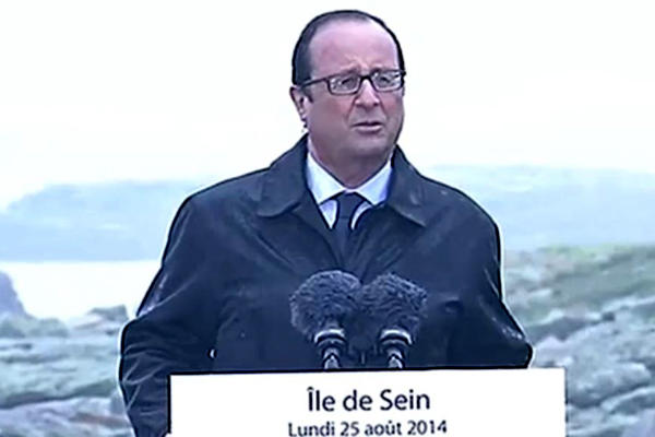 En pleine crise politique provoquée par la démission du gouvernement, François Hollande a rendu hommage à la Résistance, ce lundi, sur l’île de Sein (Finistère). Sous une pluie incessante et sans parapluie, le président a délivré un long message commémorant les 70 ans de la Libération.