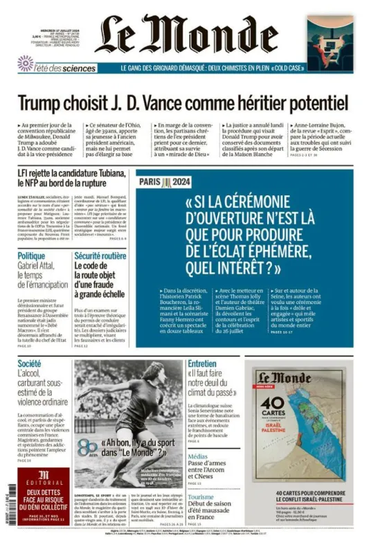 Démission de Gabriel Attal, le Nouveau Front populaire pointé du doigt, Trump nomme son vice-président...Quoi de neuf ce mercredi 17 juillet 2024 ?