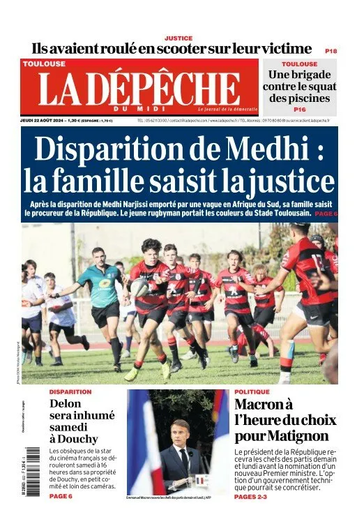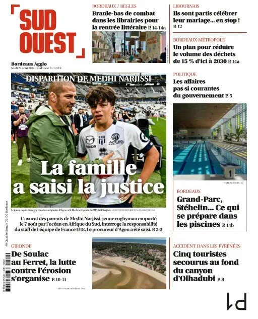 Les parents et la sœur de Medhi Narjissi, le jeune de rugbyman de 17 ans disparu en mer le 7 août lors d'une tournée de l'équipe de France en Afrique du Sud, ont porté plainte ce mercredi 21 août auprès du procureur de la République d'Agen. La famille, profondément affectée par la tragédie, cherche à obtenir des réponses sur les circonstances de cette perte.