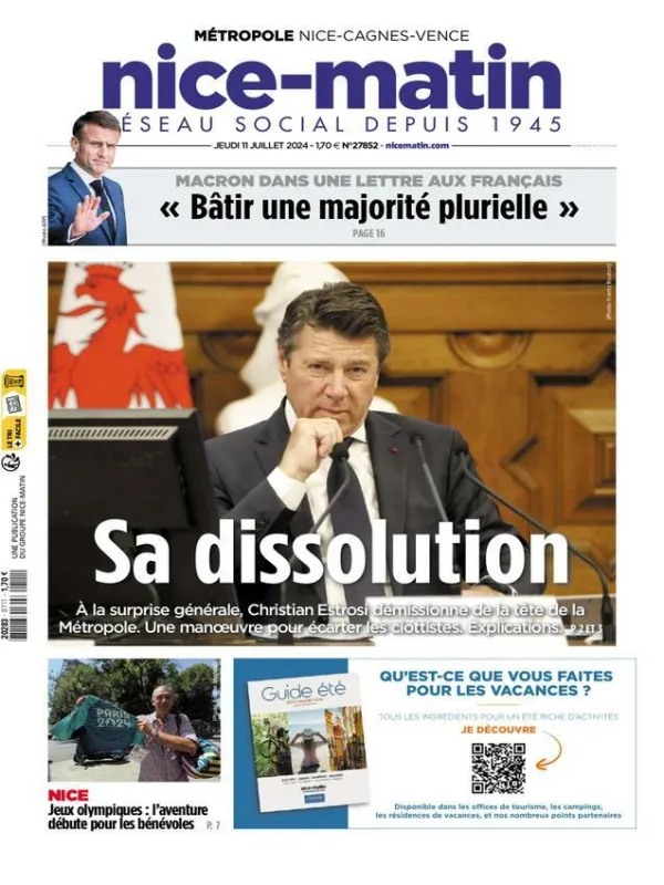 Toutefois, certains journaux choisissent ce jeudi de prioriser d’autres informations. Comme Nice-Matin qui annonce cette “dissolution” décidée par Christian Estrosi, qui remet en jeu son siège de président au sein de la métropole niçoise, un geste visant à “faire le tri” entre ses soutiens et ceux d’Eric Ciotti.