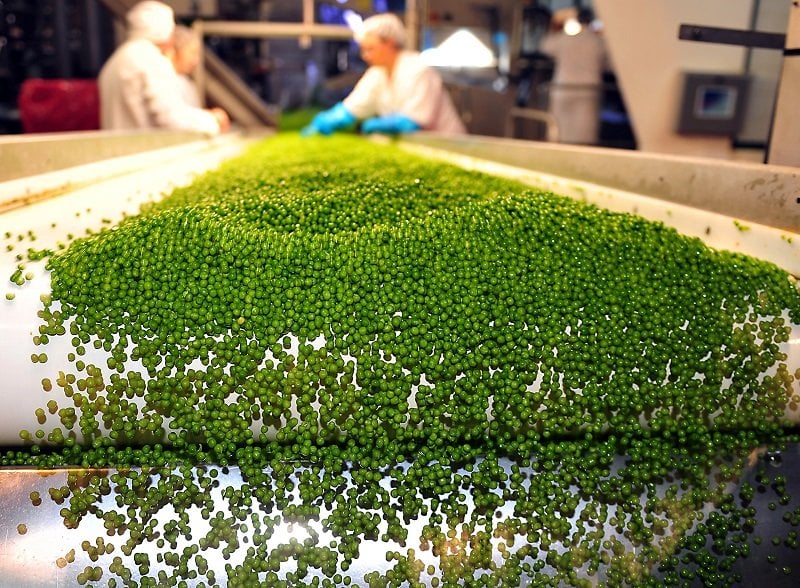 women work on peas at a factory of the french producer of processed vegetables, bonduelle on july 5, 2010 in estrees northern france  afp photo philippe huguen (photo by philippe huguen   afp)
