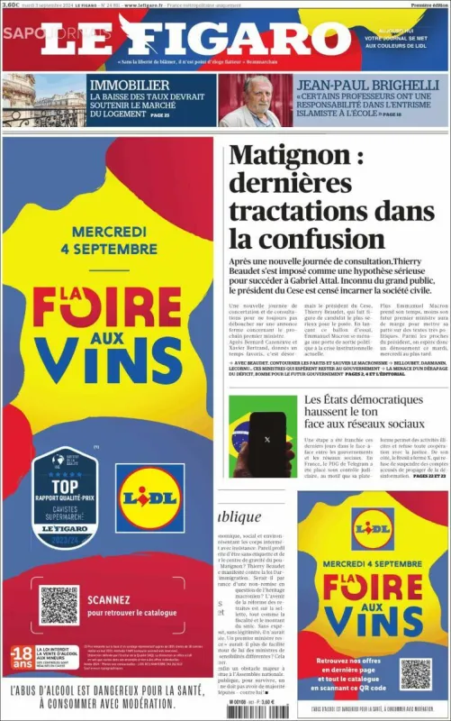 Bienvenue dans cette revue de presse du mardi 3 septembre 2024. À la Une aujourd’hui, on retrouve des actualités politiques, mais aussi sportives avec les paralympiques.