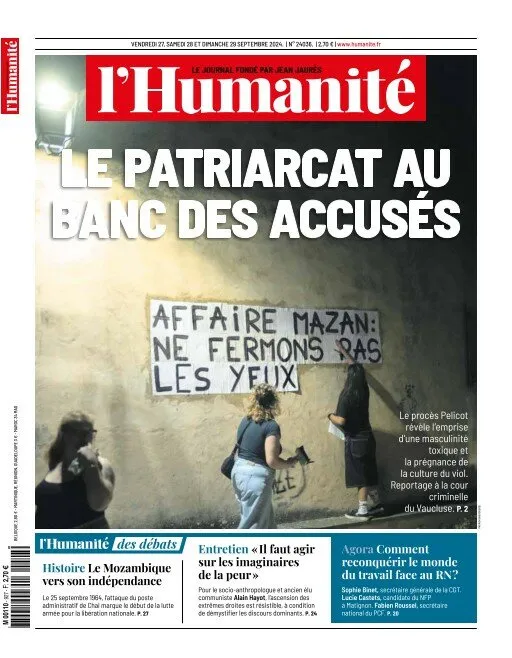 Après celui de la soumission chimique traitée par tous les médias, L'Humanité fait du procès de Mazan celui du "patriarcat". Dénonçant le "masculinisme toxique" et de "la culture du viol". Le quotidien du PC analyse l'ascension de l'extrême-droite en Europe et considère que le Rassemblement national est un frein au travail.