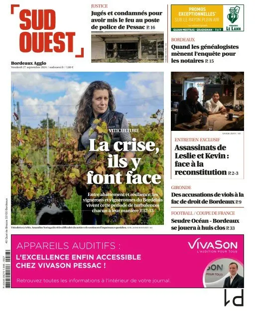 Agriculteurs et viticulteurs, même combat. Dans le Bordelais rappelle Sud-Ouest, les producteurs sont impactés à la fois par le climat et la baisse des exportations de vin. Un fait-divers oublié va voir sa reconstitution avoir lieu, la justice souhaitant faire toute la lumière sur les meurtres de Leslie Hoorelbeke et Kévin Trompat en 2022 sur fond de trafic de drogue et de dettes.