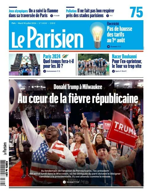 Outre-Atlantique, pointe le Parisien, les Républicains s'affichent soudés et combatifs après la tentative d'assassinat qui a visé l'ancien président et candidat Donald Trump le 13 juillet.