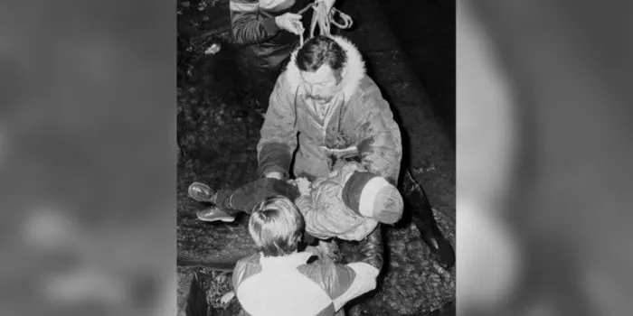 Sur cette photo, c’est un pompier du coin qui porte dans ses bras le corps de Grégory Villemin. Après 37 ans de silence, il a récemment pris la parole dans les colonnes de Paris Match pour expliquer ce qu’il s’est passé ce soir-là. L’homme de 29 ans trouve près du barrage de Docelles "un truc qui ressemblait aux sacs poubelles bleus de l’époque. C’était l’anorak de l’enfant qui était gorgé et gonflé d’eau".