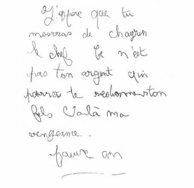 Le lendemain, les parents de l’enfant reçoivent une missive revendiquant l’infanticide, postée le jour du crime.