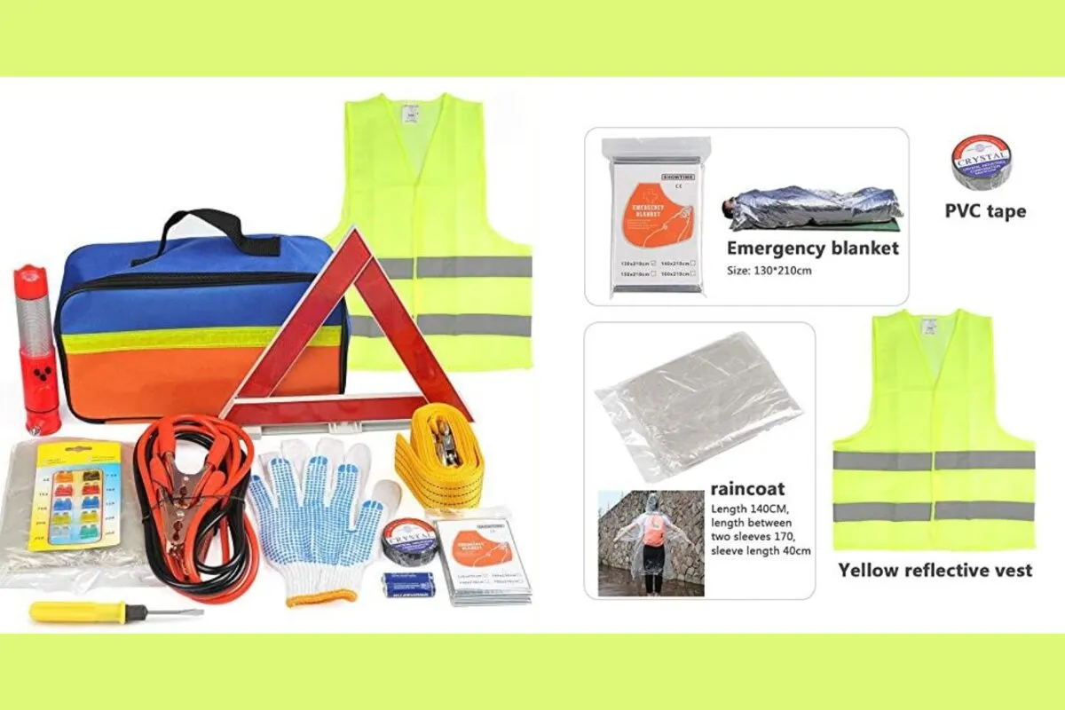 Pack de sécurité : Emportez un kit de sécurité comprenant des triangles de signalisation, un gilet réfléchissant, une trousse de premiers secours et une lampe de poche.