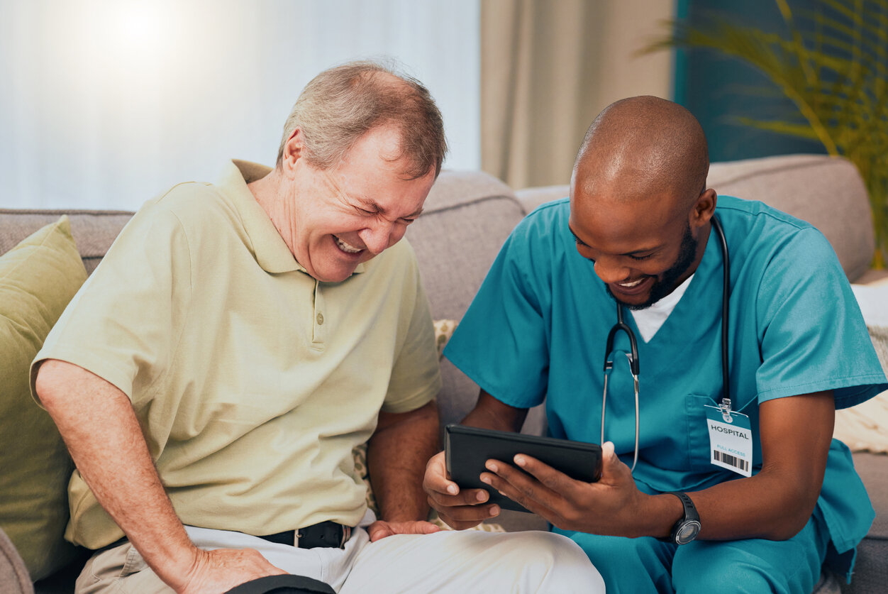 Un homme va visiter son père dans une maison de retraite juste avant l'heure du coucher.