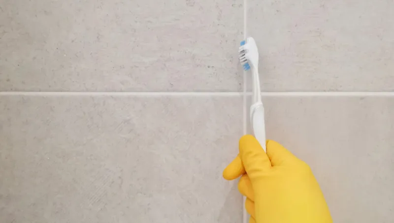 - 4/ Frottez les joints avec une brosse à dents et rincez à l'eau claire.