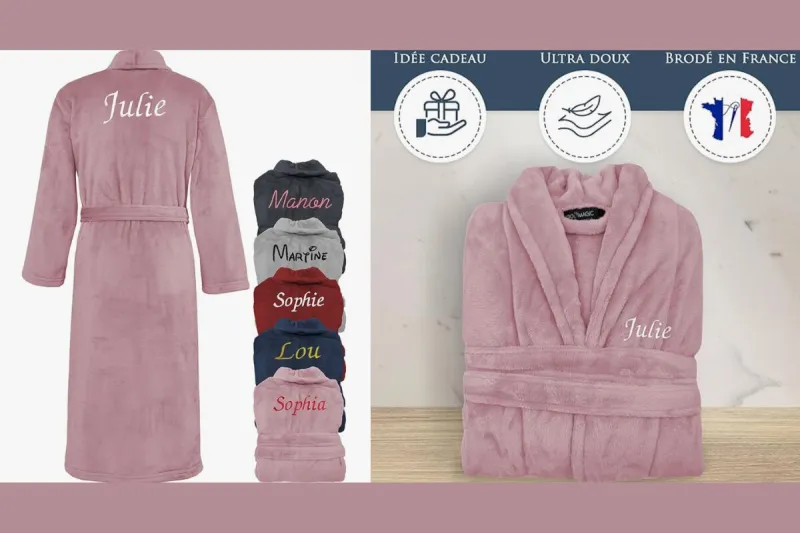Rendez vos moments de détente uniques avec ce peignoir personnalisable. Ajoutez votre prénom pour une touche spéciale.
