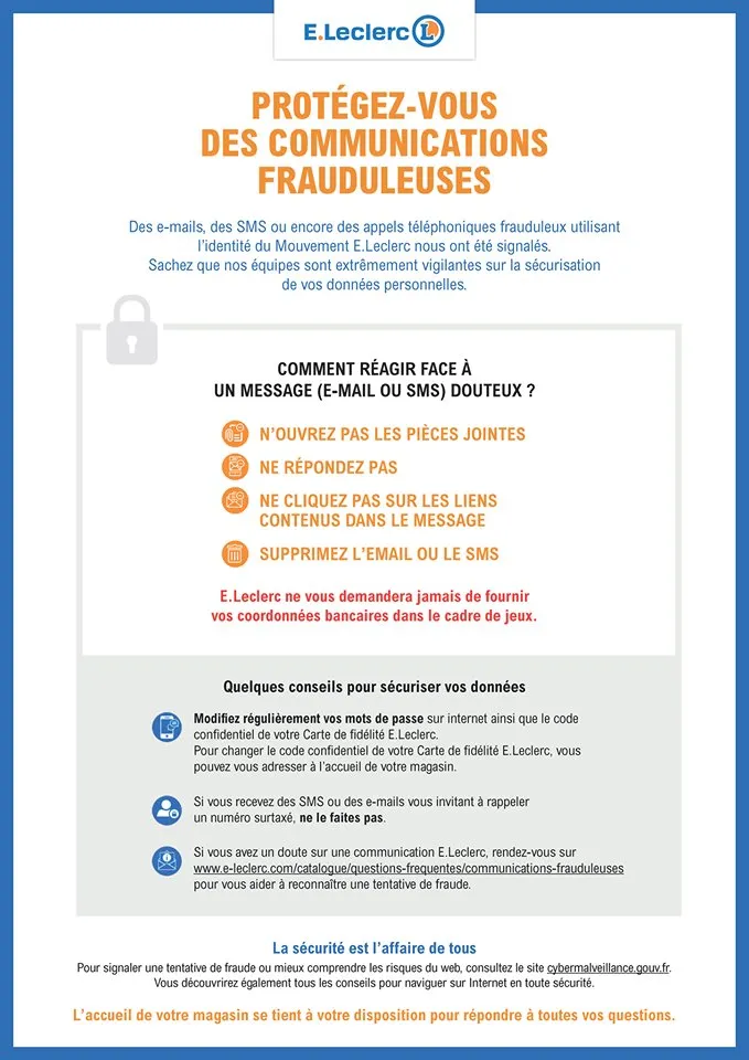 "E.Leclerc ne vous demandera jamais de fournir vos coordonnés bancaires dans le cadre de jeux."