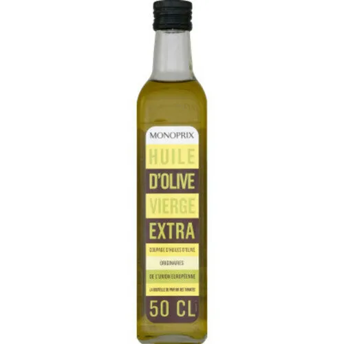 D'après 60 millions de consommateurs, l'huile d'olive vierge extra Monoprix contiendrait près de la moitié de la limite autorisée de peroxyde (20 milliéquivalents [mEq] d’oxygène/kg), qui dénature son goût.
