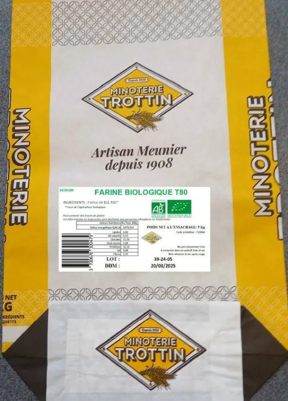 Le fabricant retire volontairement sa Farine Biologique T80, vendue aux particuliers sur site et aux boulangeries, en paquet de 5 kilos, du 07/10/2024 au 31/10/2024 dans toute la France.