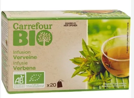 L'infusion Verveine BIO de marque Carrefour Bio, GITN 3560070888160, lot OF 088103, vendue en 26 g (1,3 x 20 sachets) du 18/09/2024 au 29/10/2024 est rappelée volontairement pour risque de présence de contaminants chimiques.