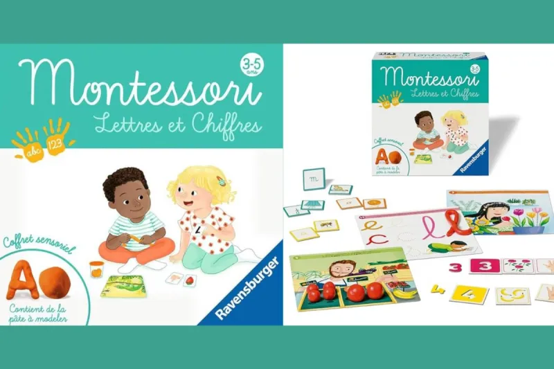 "Dans ce coffret sensoriel, développé avec la pédagogie montessori, l'enfant va apprendre par la manipulation. L'enfant forme des lettres avec la pâte à modeler, découvre les chiffres de 1 à 10 avec les cartes à encastrer ou encore assemble chaque lettre avec le mot correspondant." - Description de l'éditeur.