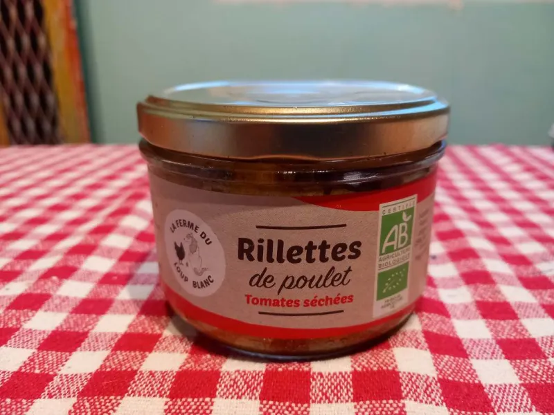 Les rillettes de poulet tomates séchées de la marque La ferme du loup blanc
