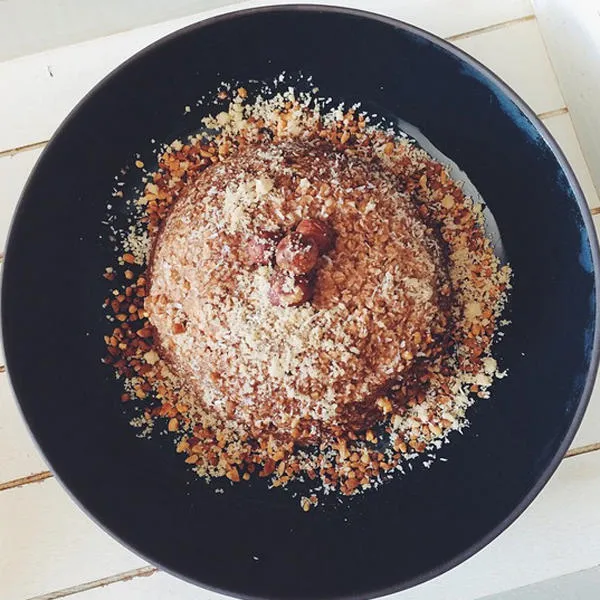 Quelques noisettes concassées (ou une à deux cuillères à café de noisettes en poudre)