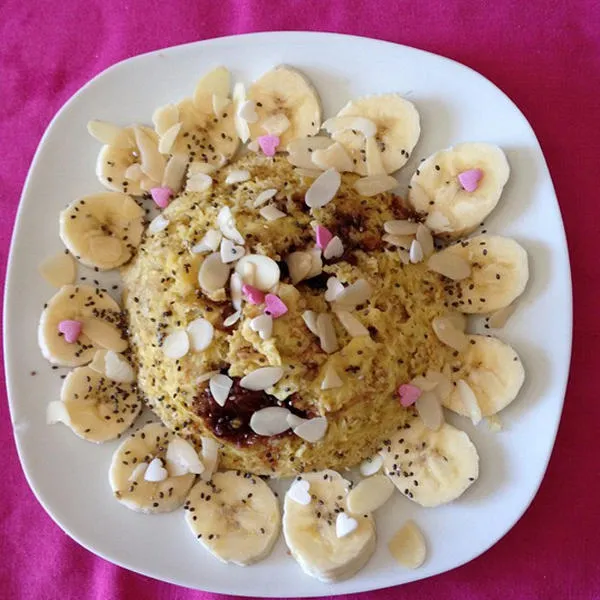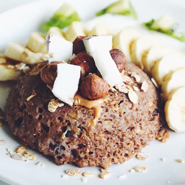 Bowl cake aux flocons d’avoine, banane et pépites de chocolat