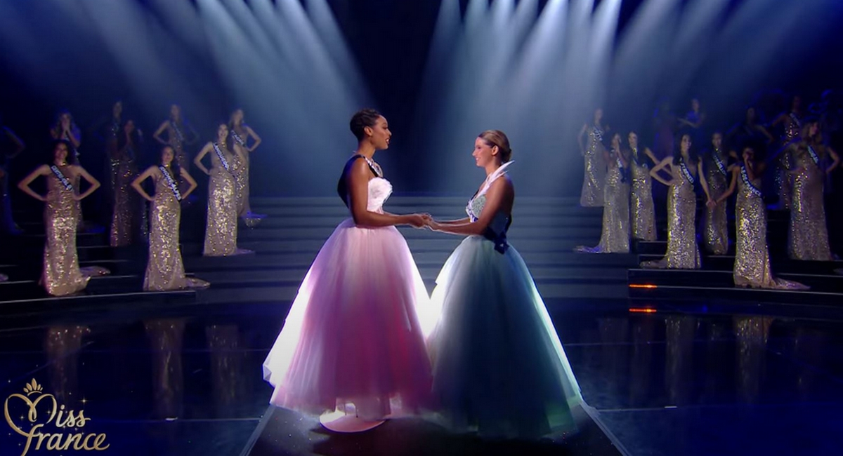 La reine de beauté martiniquaise succède à la Nordiste Eve Gilles qui lui pose sa couronne sur la tête. Un moment historique et riche en émotions pour les deux femmes.