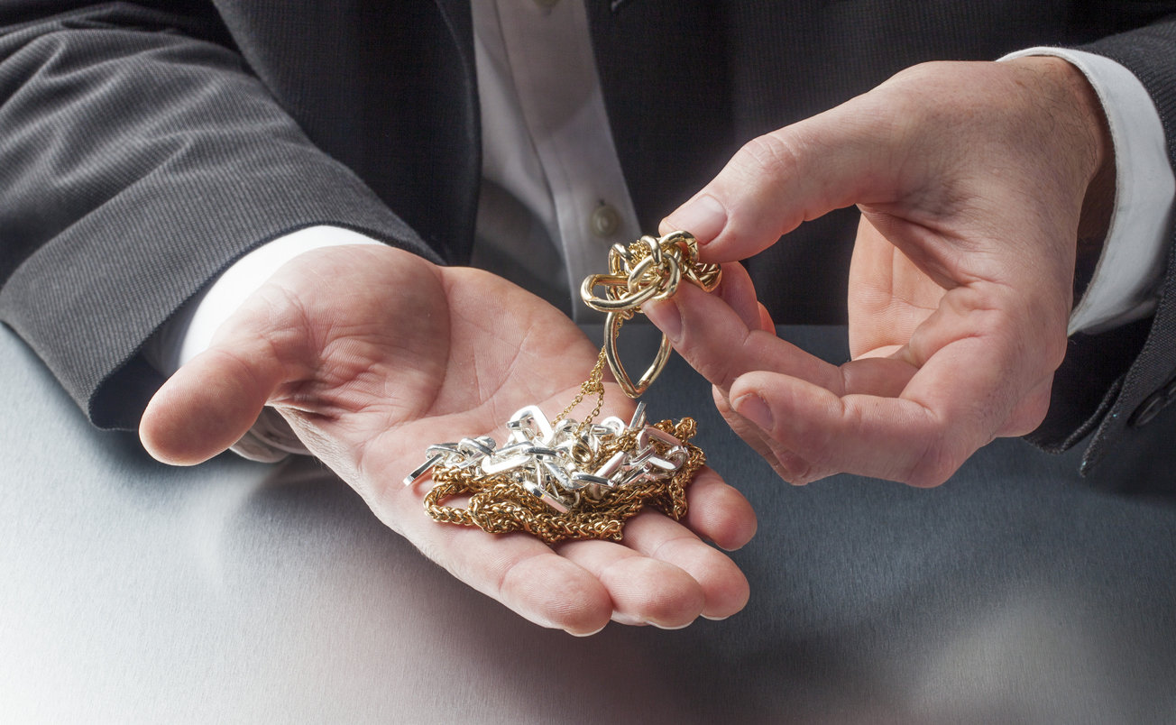 golden and silver jewellery in hands