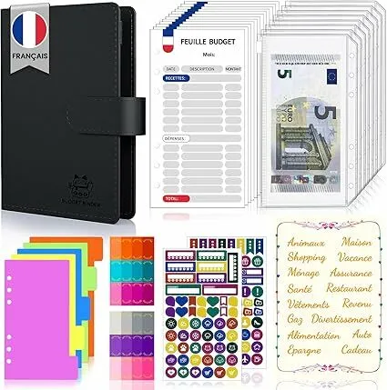 Ce genre de classeur ou "budget planner" est très utile quand on est "juste" et ne grèvera pas votre budget : il ne coûte généralement qu'une dizaine d'euros. Il comprend 12 fiches, soit une par mois, où détailler et calculer la somme de vos dépenses et rentrées d'argent prévues, au dos desquelles vous pouvez les répartir par catégorie. Chaque fiche s'accompagne d'une enveloppe plastique dans laquelle glisser des billets pour un montant équivalent (ou supérieur si vous le pouvez) à ce dont vous aurez besoin pour les 30 ou 31 jours. D'autres fiches de suivi associées aux enveloppes permettent de noter chaque sortie et chaque rentrée d'argent.