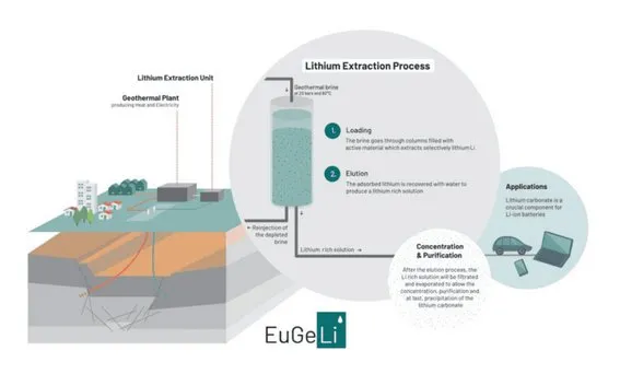 Le projet EuGeLi a prouvé la faisabilité de l’extraction du carbonate de lithium avant réinjection dans le sous-sol. Un procédé innovant, développé par Eramet et l’IFPEN a permis d’extraire le lithium des saumures géothermales grâce à des colonnes d’extraction remplies d’un matériau d’adsorption qui capte de façon sélective le lithium.