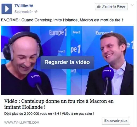 Le plus inquiétant est que ces vidéos semblent tout à fait ordinaires. Mais quelques signes permettent tout de même de les remarquer rapidement : la mention "Sponsorisé", des textes de présentation vantant la viralité de la vidéo ("plus de 2 millions de vues en 48H")… Ces vidéos sont publiées par des sociétés telles que TV-Illimité ou Dailysmile.tv.