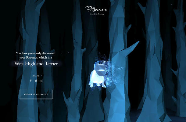 Harry Potter a un cerf, sa camarade Hermione, une loutre, et l’auteur de cet article un "westie" (West Highland Terrier). Et vous ? Pour le découvrir, cliquez sur le lien suivant : Pottermore.com.