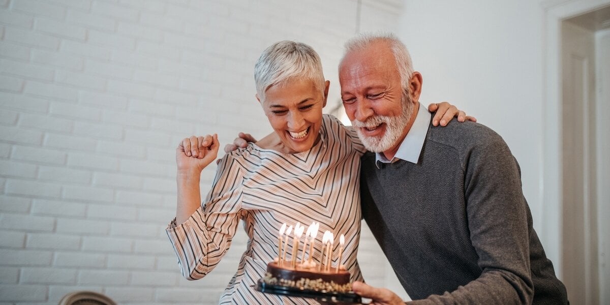 Un mari inspecte, devant tous les invités, les vingt-six bougies, plantées sur le gâteau d'anniversaire de sa femme.