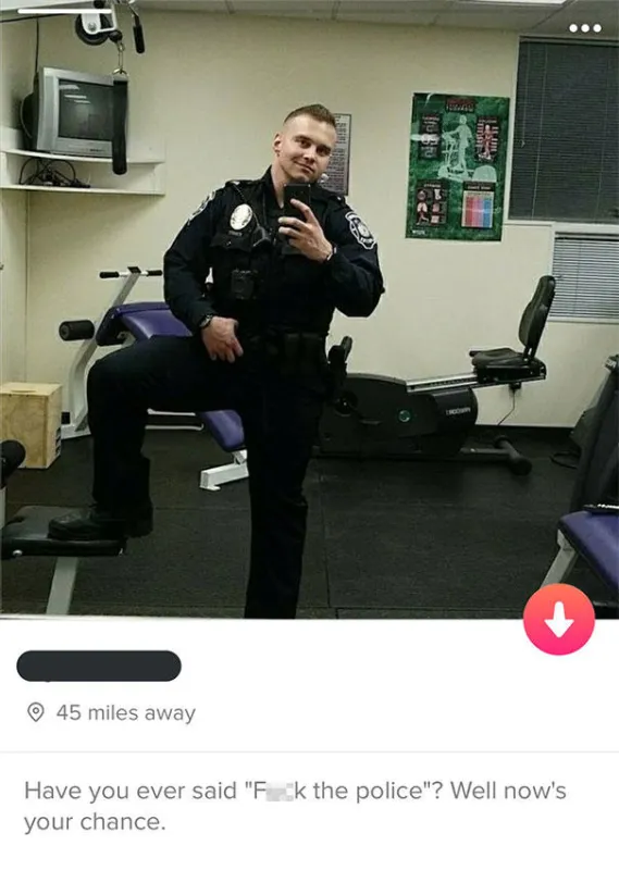 Traduction : "Avez-vous déjà dit 'J'enc*le la police ?' Et bien maintenant, tentez votre chance."