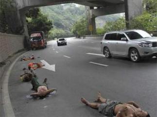 Des ouvriers chinois n’ont pas hésité à improviser une sieste en plein après-midi sur une autoroute. Alors qu’ils étaient allongés à même le bitume, les voitures ne circulaient qu’à seulement quelques mètres d’eux.