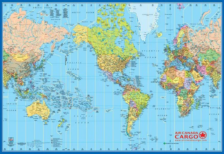 La carte du monde vue depuis les Etats-Unis et le Canada