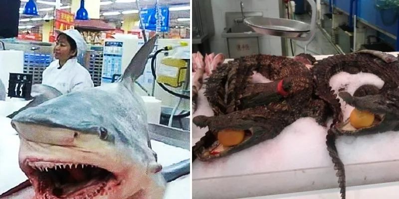 On y trouve des requins et crocodiles entiers garnissent les étalages des magasins