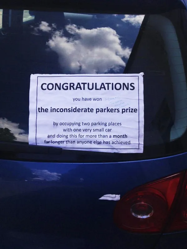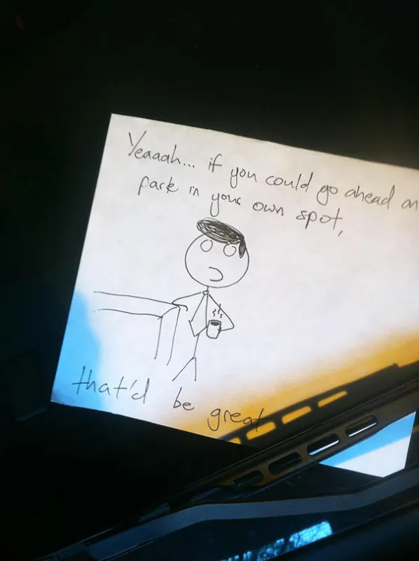 Une personne visiblement pas ravie que sa place de parking soit occupée