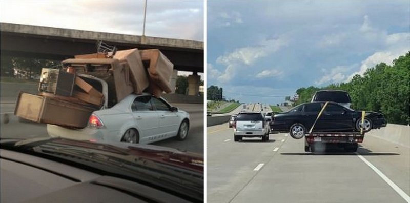 Sur les réseaux sociaux, de nombreux internautes ont compilé des images et scènes insolites qui se sont déroulées sous leurs yeux. Accidents ridicules, conducteurs punis par le karma, déménageurs totalement incompétents... Les photos que vous allez découvrir dans notre diaporama vont vous faire halluciner ! À moins de vouloir être en sécurité dans les transports en commun, ou que vous ayez une peur bleue du volant, les comportements qui suivent ne sont en aucun cas à reproduire sur la route des vacances.