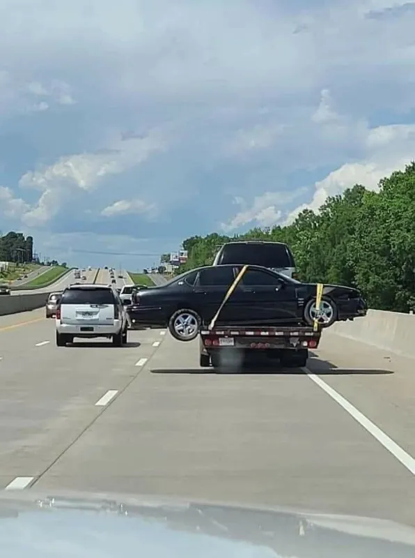Une voiture en panne transportée par un dépanneur irresponsable