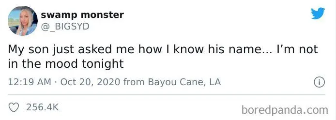 "Mon fils vient de me demander comment je connais son nom... Je ne suis pas d'humeur ce soir"
