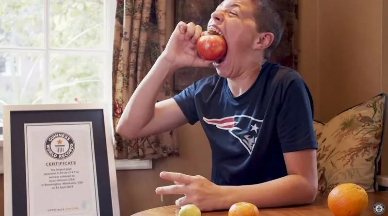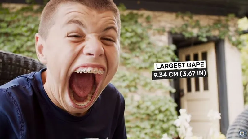 Plus précisément, la bouche (grande ouverte) de cet adolescent originaire du Minnesota a un écart maximal – entre sa lèvre inférieure et sa lèvre supérieure – mesurant 9,34 centimètres. "J’ai toujours su que j’avais une grande bouche mais ce n’est qu’en 2017 qu’on a découvert que c’était un record mondial", a reconnu le jeune Isaac dans une vidéo publiée sur la chaîne du Guinness World Records en décembre dernier.