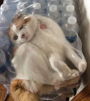 Mais comment a-t-il pu se retrouver à l'intérieur de ce pack de bouteilles d'eau ?