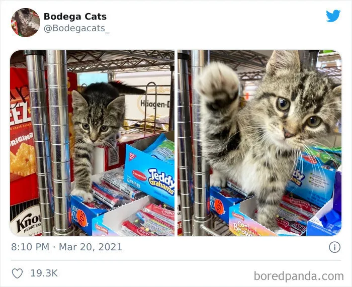 Sur les réseaux sociaux, un New Yorkais a créé le compte Bodega Cats où il regroupe toutes les photos insolites envoyés par les internautes sur Twitter. Des chatons aussi doux et mignons, mais aussi malicieux et farceurs qui risquent bien de vous faire sourire. À cette occasion, Planet vous invite à découvrir un florilège des images les plus drôles dans le diaporama ci-dessus.