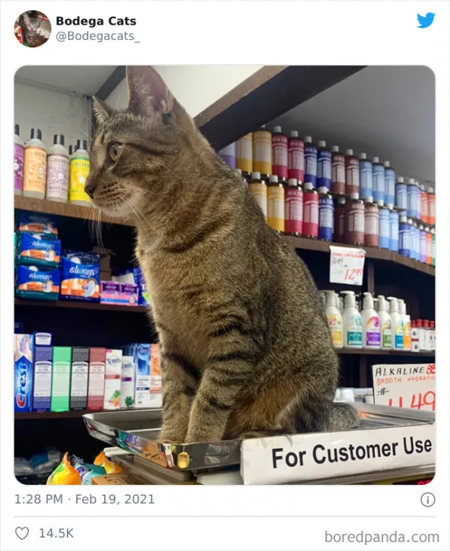 Ces derniers temps pendant le confinement, les chats investissent les lieux de commerces essentiels et se glissent parmi les étalages sans passer inaperçus. On les imagine paresseux, allongés au beau milieu d’une allée, ou bien décidés à vous déranger pendant vos courses ? Ce n’est pas faux. Plus surprenant encore, certains félins aperçus en magasin prennent même la place des commerçants. D'autres s'amusent même à jouer à cache-cache ou à faire la loi dans le magasin.