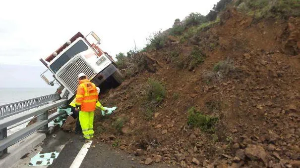 Victime d'un éboulement de falaise, le conducteur de ce camion a évité une terrible chute