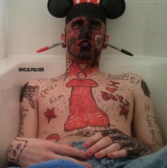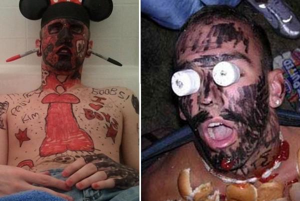 On ne vous le dira jamais assez : " l'abus d'alcool est dangereux pour la santé, à consommer avec modération". Mais ce qu'on vous dit moins, c'est que l'alcool peut aussi vous réserver de mauvaises surprises ! En effet, après une soirée bien arrosée, un ami pourrait profiter de votre sommeil profond pour vous jouer un mauvais tour ! Imaginez, vous vous réveillez avec une gueule de bois et vous découvrez avec stupeur que votre visage a été gribouillé avec du feutre ! Sachez que pour certaines personnes qui se retrouvent dans ce cas-là, ce n'est pas qu'un simple gribouillage qu'ils ont au réveil : ils se sont carrément fait refaire le portrait au point de devenir des oeuvres d'art !