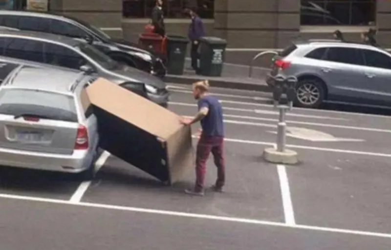 Cette personne croit fermement que le canapé peut rentrer dans sa voiture