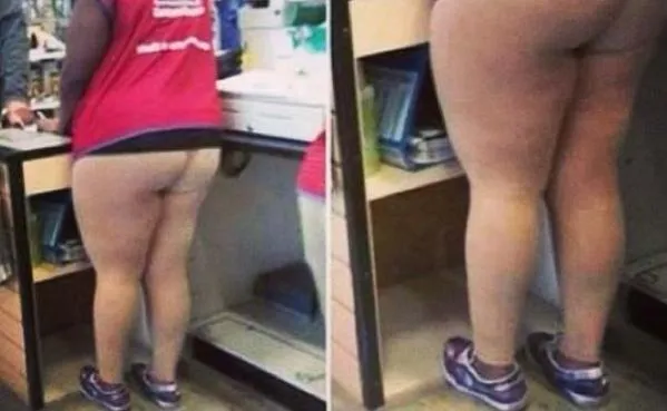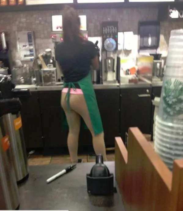 Cette serveuse travaille-t-elle sans pantalon ?