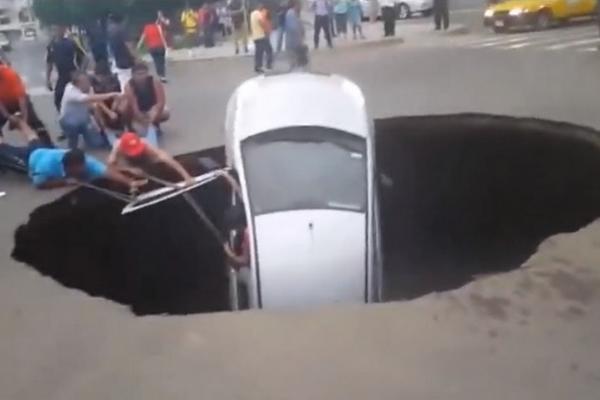 Imaginez. Vous êtes en train de vous balader dans la rue, quand soudain, un trou béant s'ouvre brutalement sous vos pieds et vous emporte... Ce phénomène géologique effrayant s'appelle le sinkhole ("trou d'évier" ou "doline" en français). Il peut être provoqué soit par la dégradation des nappes phréatiques ou l'érosion naturelle de la roche. Le véritable problèlme : c'est que ce phénomène est imprévisible ! Camping, voitures, passants... Voici une série de vidéos de toutes ces choses victimes d'un sinkhole à découvrir dans notre diaporama .
