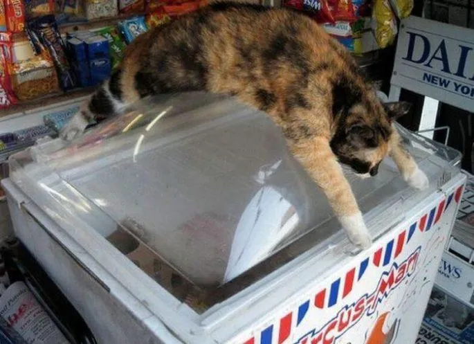 Ce chat a aussi adopté la méthode du frigo