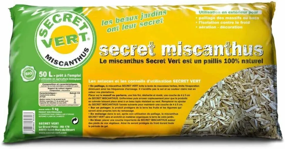 Le paillis de miscanthus 50L, protège vos plantes du froid et du gel etprévient la repousse des mauvaises herbes.